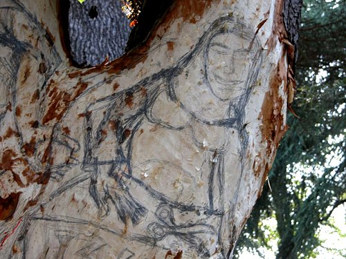 The design incorporates the river, complete with goddess, winding around the base of the trunk and an ancient town map.